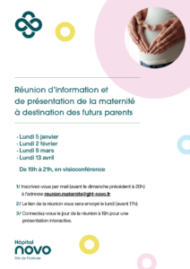 Merci de vous inscrire par mail (avant le dimanche précédent 20h) à l’adresse suivante reunion.maternite@ght-novo.fr