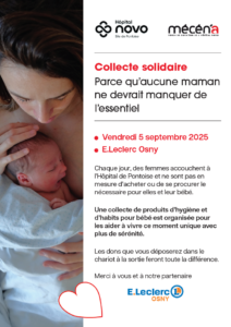 Parce qu’aucune maman ne devrait manquer de l’essentiel Chaque jour, des femmes accouchent à l’hôpital de Pontoise et ne sont pas en mesure d’acheter ou de se procurer le nécessaire pour elles et leur bébé. Le service social et la maternité du site de Pontoise de l’Hôpital NOVO se mobilisent pour eux. Dans le cadre […]