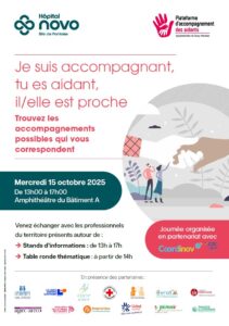Mercredi 9 octobre 2024 De 13h30 à 17h00 Stands d’information Hall d’accueil du bât A La plateforme des aidants de l’Hôpital NOVO – Site de Pontoise propose de vous accompagner quant à votre rôle auprès de votre proche malade, par la présence de différents professionnels de santé.