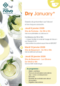 À l’occasion du Dry January (Janvier sans alcool), l’Équipe de Liaison et de Soins en Addictologie (ELSA) du site de Pontoise de l’Hôpital NOVO, en collaboration avec le Service de Santé au Travail et le Centre de Ressources Documentaires, organise des journées de prévention sur l’alcool et les risques associés. Différents ateliers seront proposés : […]