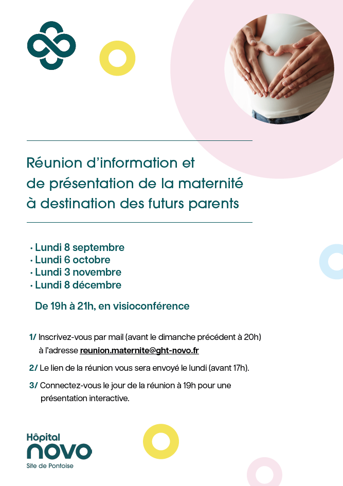 Des réunions d’information et de présentation de la maternité sont proposées une fois par mois de 19h à 21h.