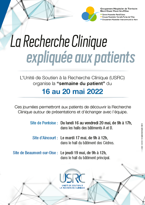 L’Unité de Soutien à la Recherche Clinique (USRC) organise la « semaine du patient » du 22 au 26 mai 2023.