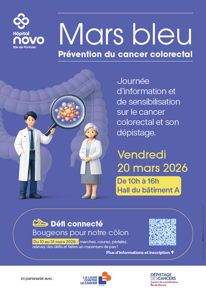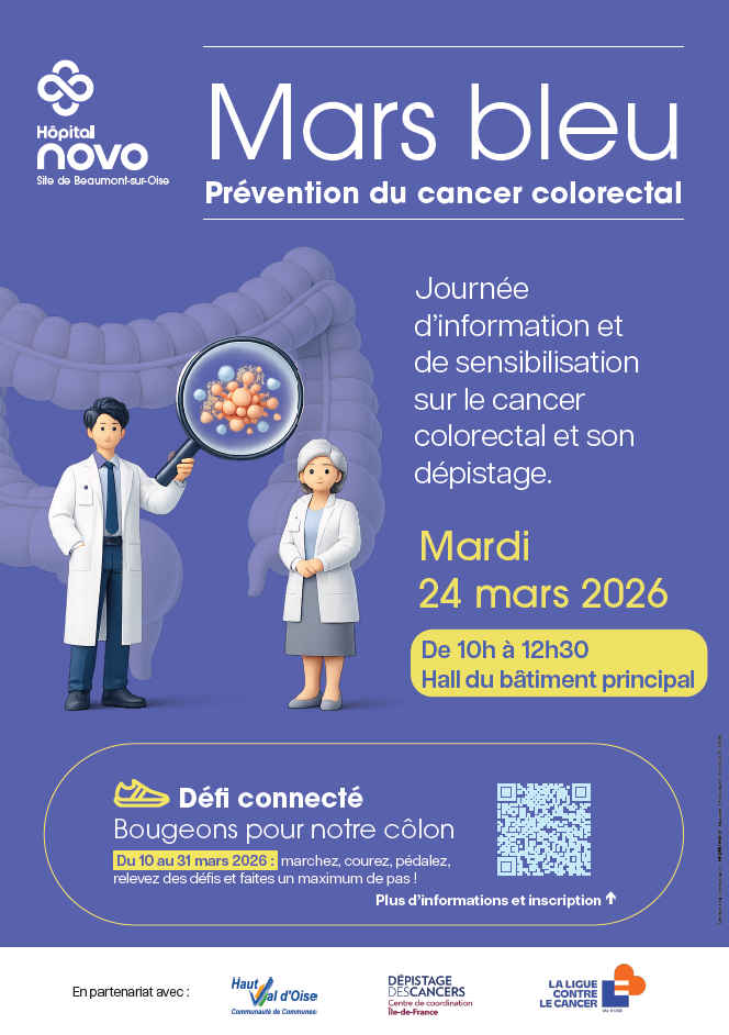 Pour mars bleu, mois dédié à la prévention du cancer colorectal, des journées d’information et de sensibilisation sont organisées sur les sites de Pontoise et de Beaumont-sur-Oise.
