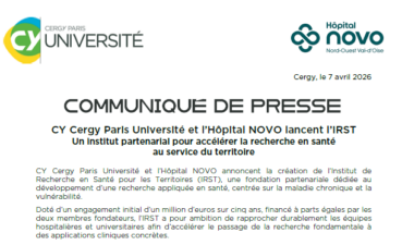 L’Hôpital NOVO et CY Cergy Paris Université lancent l’IRST, un institut partenarial pour accélérer la recherche en santé au service du territoire.