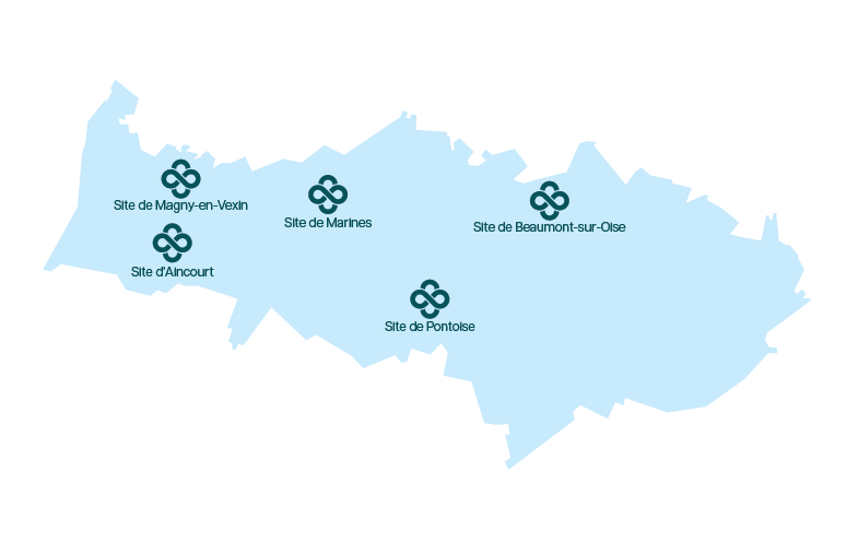 Le site de Marines est dédié à la gérontologie et dispose d’un SMR gériatrique, d’une Unité de Soins de Longue Durée, d’un EHPAD avec une Unité d’Hébergement Renforcé et un Pôle d’Activités et de Soins Adaptés.